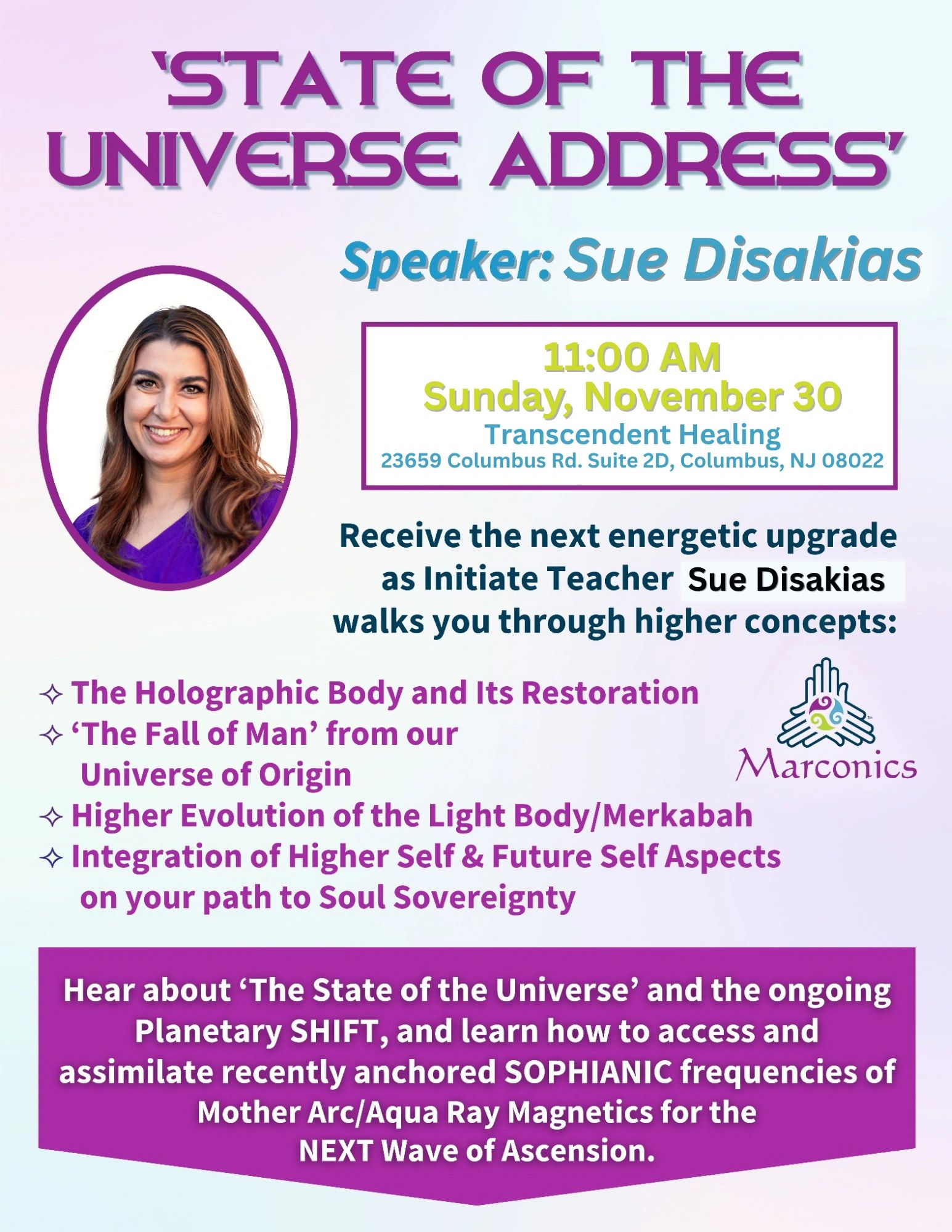 Are you ready for the next wave of Ascension? Ascension out of 3D is over! Ascension into 5D is halfway through, and ascension into 7D is just beginning! Receive the next ‘Ascension Upgrade’ as Marconics Initiate Teacher Sue Disakias explains how Marconics RECALIBRATES the physical body for the assimilation of higher dimensional realities and how the subtle bodies heal in synthesis. Join us here: Marconics
